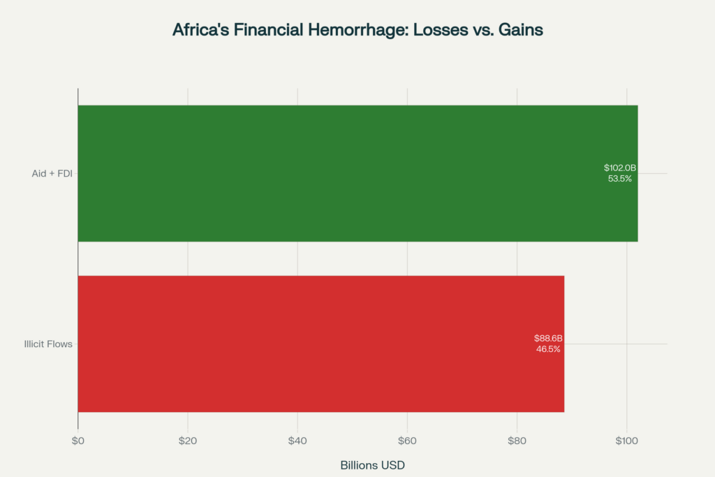 - Africa loses $88.6 billion annually to illicit financial flows, nearly matching the combined $102 billion from aid and foreign investment